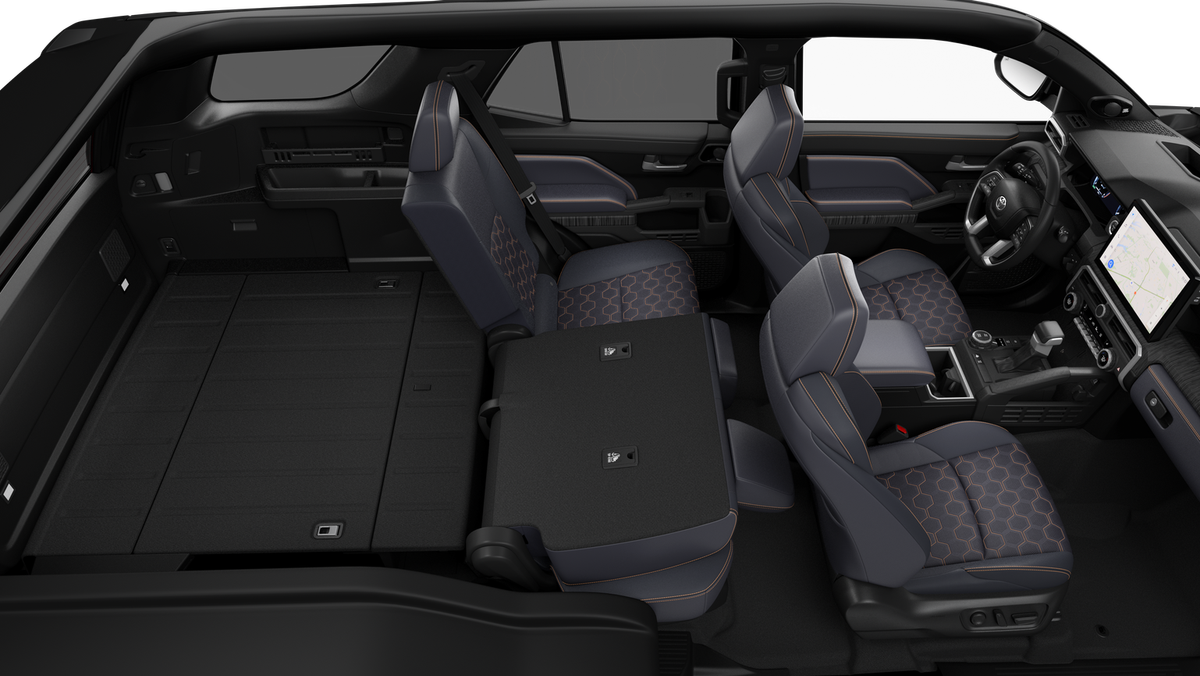 - 60/40 split, heated, reclining and tumble-folding second-row seat with center armrest and cup holders