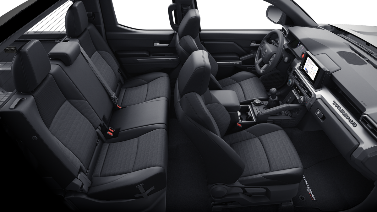 - Fabric-trimmed seats; 6-way manually adjustable driver and front passenger seats with 2-way power-adjustable lumbar support on driver's seat only